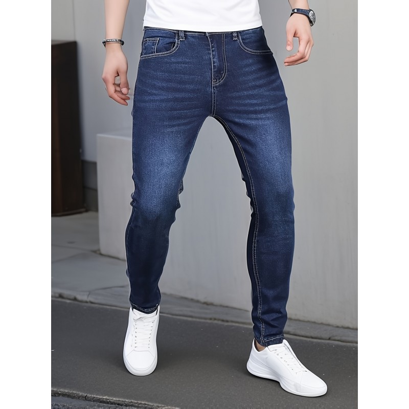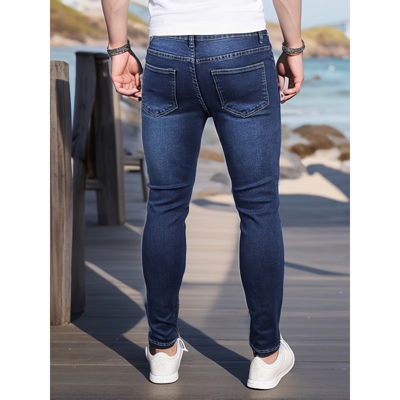Men's Casual Skinny Jeans, Street Style Medium Stretch Denim Pants